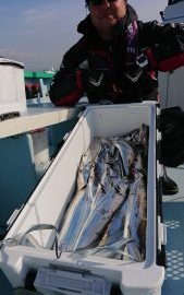 ルアータチウオ船 2020年3月1日タチウオ 釣果 水 温:12.9℃ 釣り場:走水沖 魚 種:タチウオ 大きさ:75cm〜106cm 匹 数:3〜20本 竿 頭: 船橋市の中島さま コメント 今日も序盤からアタリが渋い状況でしたが、終了間近から反応はまとまり始めて「誰かしらヒット」とまでは行きませんでしたがポツポツとアタリは続き、2番手17本で4番手までは二桁釣果となりました。 明日も出船予定ですので、ご予約をお待ちしてます。 共有:Tweet 関連
