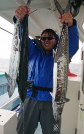 序盤は脂の良くのったサゴシが良型タチウオまじりでボツボツと釣れ上がり、皆さん全員キャッチ出来て後半は「N船長」の模様でサワラ狙いに直行❗。