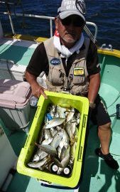 下げ潮が流れ始めてから、段々とアタリが増えて、終始、誰かしらが釣れている状況が続き今日は小アジも元気いっぱいだったので、数も増えました。