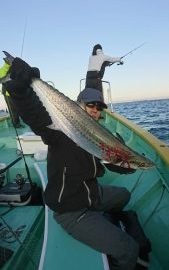 今日も朝一のモーニングサービスが有り、シーバスやイナダに混じって、良型のサワラが上がりました。朝の小一時間でサワラが5本釣れましたがアタリが止まってしまったので、ポイントを大きく移動しました。