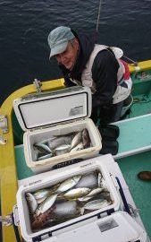 後半は少し水深の深い方を狙って、潮の流れは緩かったものの、アジの活性は良く、サイズも30センチ前後の良型が揃い、40センチ前後のマサバも混じり、皆さま、お土産は確保出来ました。