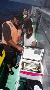 今日も小サバは、たまに混じる程度だったので釣りやすく、サイズも25~30センチの良型が多く、朝一の小一時間だけは忙しい釣りを楽しんで頂きました。
