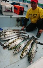 毎年リールをポンコツにしてしまうほど過激なリールの使い方で、今日は初下ろしのリールで臨んだトップの米沢様はバラシ少なく9本!。2番手5本、3番手4本がお4人で船中20名様で56本!。