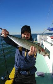 移動後もベイトフィッシュの反応は多く、開始早々にサワラを2匹キャッチ出来ました。その後はシーバスとタチウオがポツリポツリと釣れましたがサワラは2つバラシた後に1匹キャッチとアタリが少なく苦戦しました。最後は再び北上して、イナダ数匹とワラサが上がりましたがサワラは水面でバレて終了となりました。