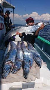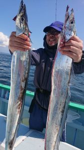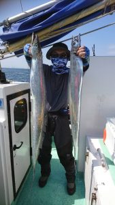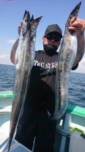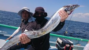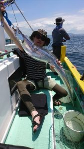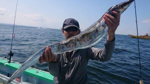 開始からタチウオの活性は良く、サイズは ほぼ可愛いサイズでしたが 誰かしらヒットする時もあり好調でした。