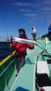 コメント : 今日は北東風が強く波も高く、シケ模様でしたが朝イチに鳥山、ナブラに遭遇して、チャンス到来と思いきや、しばらく狙いましたがアタリ無く、探索しながらタチウオのポイントに向かいました。
