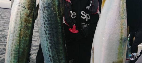 昨日の冷たい北よりの風と雨で水温が下がり、ベイト反応が中々見つからなかったのですが、今日は思いの外アタリが多く サワラは船中16本でキャッチ出来た方は15人様で、2本キャッチはお一人様でしたが 数人は何度かバラシは有って トップの矢作様も3ヒットで2キャッチでした。