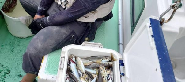 コメント: 開始からアタリは出ましたが群れが留まらず、廻ってくるとポツポツと釣れて、小アジは元気一杯で中型も混じって釣れました。