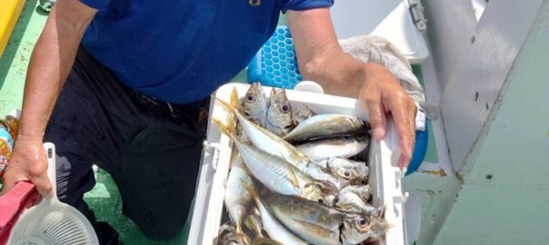 コメント:今日も台風の影響無く比較的に穏やかな海で、アジ釣りを楽しんで頂けました。