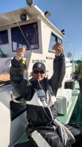 潮止まりのタイミングで深めのポイントを転々と探索しましたが約2時間で船中2匹…とこちらは渋々の模様でした。
