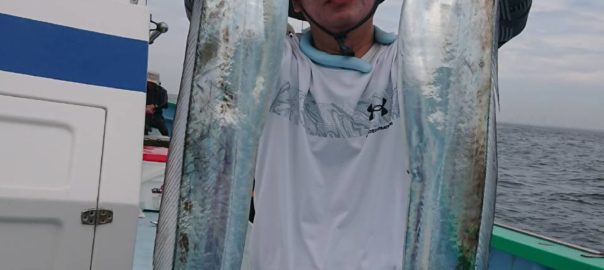 タチウオのアタリは中だるみの時間帯はあったものの全体的にはアタリは多めで、サイズは小•中•大のまじりでしたが、皆さんメーターアップをキャッチすることができました