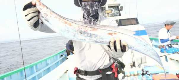 前半は今日も中•小クラスから釣れ上がりましたが、時折大型タチウオもまじりここ数日の雰囲気とは違って前半だけでメーター超えを3本キャッチされた方もいらっました。
