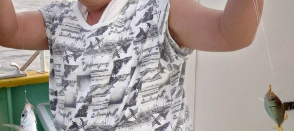 海上は危険な暑さです。水温が31℃前後なので風もぬるいです。水分、塩分の準備は必ず多めに(1人2リットル以上目安)お願いします。船釣りに慣れてないお客様は冷却スプレー、熱冷まシートなど自分を冷やす道具も準備して自分の体調管理は自己責任で万全にお願いします。