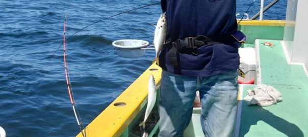 その後は小アジが元気いっぱいで、好調にアタリが続き、ビシの仕掛けでもサビキ仕掛けでも5点掛け、6点掛けが有り、ハリ数が多い方は、忙しい時間帯もあり数がグングン伸びました。
