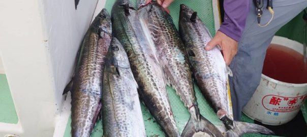 コメント : 今日もサワラの活性高めでバラシやラインブレイクなどあり、なかなか船内に入らない時間帯がありましたが、全体的に太いサワラが目立ちました。