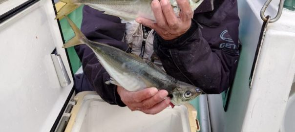 コメント: 今日もアジの活性高く、小アジ主体でしたがポツポツと釣れ始めて、後半の下げ潮に変わると食い気が爆上がりでダブル…トリプル…と入れ食いモードでアタリが続き、たまに中型も混じって、終盤には幸運な方は大型もキャッチ出来て皆さまお土産はバッチリ確保出来ました。