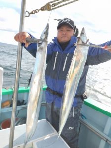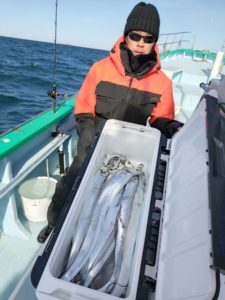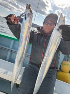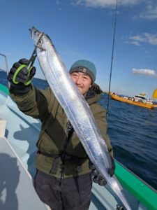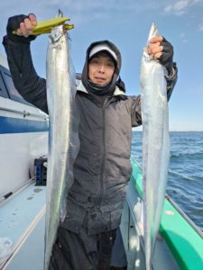 北風が強く特に午前中は波が高く釣りづい状況で、タチウオの活性は低い状態でした