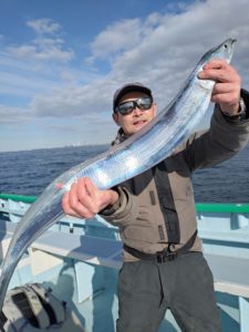 道糸はPE1~1.2号、ショックリーダーは30lb。ラインンカット防止の為にリーダーの先に太めのリーダー30cm位を付ける方もいらっしゃいます。