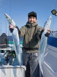 今日も水深40m前後のポイントで、本日最大は大泉様の釣り上げた130cm!