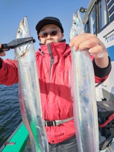 序盤のタチウオの活性は良く誰かしらヒットする感じも有りましたが、徐々に反応は出ていてもタチウオの活性は落ちてしまい たま〜にのアタリになってしまいました