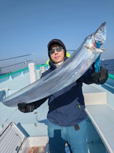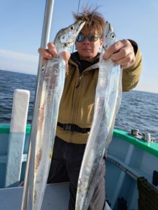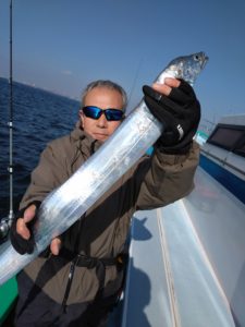若干タチウオの魚影は湾奥へと戻り、水深は同じく40m前後でした。