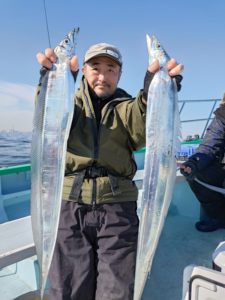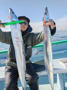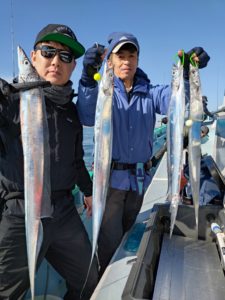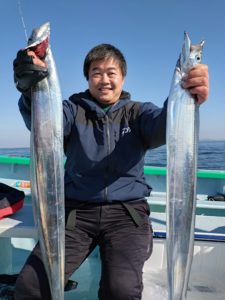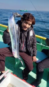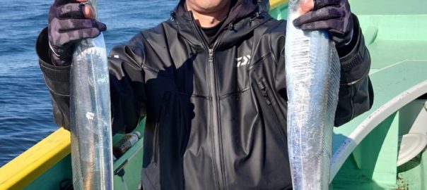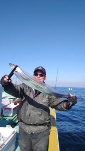 今日も水深40m前後のポイントでやはり反応が出ていてもたまにヒットする程度で、中々タチウオの活性は上がってくれませんでしたが、前半は厳しい状況でした