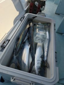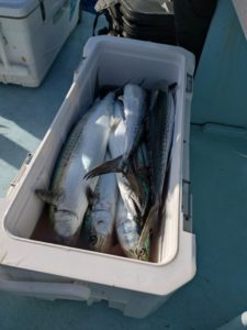 船酔いで終了30分前から復活出来てサゴシ5本とイナダ1つキャッチ!。