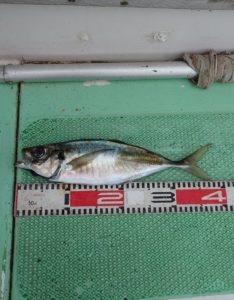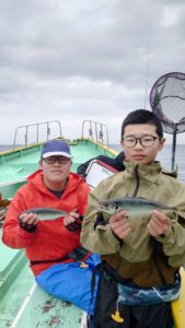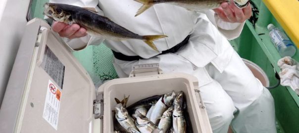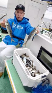 小アジに混じって大型も釣れて、全員キャッチにはなりませんでしたが尺アジを数匹ずつキャッチされた方もいました。