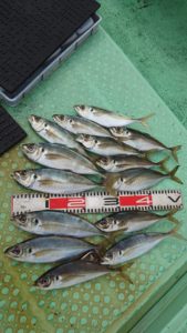 今日もアジの活性高く、各ポイントで入れ食いタイム有り、今日は昨日よりも小アジが優勢でしたが小〜中型がモリモリ釣れて、たまに30センチオーバーの大型も混じり好調に釣れました。