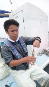 コメント : 今日は朝からシロギスの活性が低く、なかなか型を見られませんでした。長めにジックリと流してたまーにアタリが出る程度でしたが終盤には、いくらかアタリが出始めたので少々、時間を延長して頑張って頂きました。