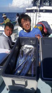 ルアータチウオ船 2017年8月6日タチウオ 釣果 水 温:26.8℃ 釣り場:富津沖~大貫沖 大きさ:60~94cm 匹 数:3~21匹 竿 頭:葛飾区の宇津野さま コメント ポイントに粘ってもアタリが長続きせず、転々とポイントを変えながらの釣果です。 2番手20匹で過半数の皆さんは二桁釣果となりましたが、ここ数日はサイズに恵まれず、大型タチウオがキャッチ出来ていません…。 明日も出船確定してますので、チャレンジをお待ちしてます。 共有:Tweet 関連