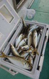 小アジ揃いでダブル、トリプル、サビキのお客さまは多点掛け連発で皆さま順調に数を伸ばして頂きました。運の良いお客さまは25~30センチの大型も数匹キャッチされました。