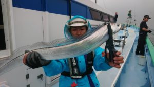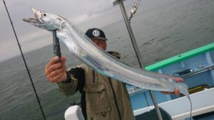 やはり小ぶりなサイズがメインでポツン•ポツンと釣れ上がりメーターアップもキャッチできたのですが、長くは続かずその後は富津方面へと転々と探索でした。少し期待していた夏場のポイントでは反応確認出来ず、最後に30m前後のポイントで大型タチウオまじりで良型タチウオがヒットしてくれて、大型が数本水面でバレてしまったものの最後に船上は活性が上がりホットました。