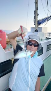 朝イチは水深60mのポイントから開始でしたが、数本キャッチ出来ただけでアタリが続かず走水沖へと向かって見ました
