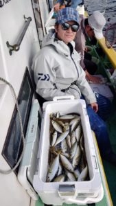 今日も最後の最後の終了間際で大型の連チャンがあってレンタルタックルで初挑戦のお客様も尺アジをキャッチ出来て皆さまお土産は確保出来ました。
