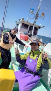 後半は潮の流れが弱まり活性が低くアタリが出せる方はコンスタントに釣れてましたが、ナーバスなアジに皆さま手こずってました。アタリは少なくなりましたが良型が混じって皆さま、お土産は確保出来たようです。