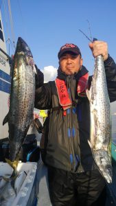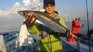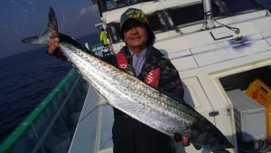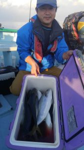 キャスティングをメインで狙い、メインターゲットはサワラでした。僚船では数匹キャッチ出来たようでしたが、当船では、間際までの追いと、らしきバラシだけでキャッチする事が出来ませんでした。イナダは鳥山出来て、ボイルも多く見られ、全員キャッチできましたが、派手な鳥山のわりにはアタリは少な目でした。しかしながらイナダの脂のノリは大分多くなって来たようで頭が小さく見えてきましたね。