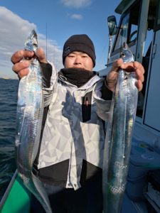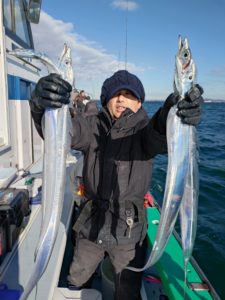 序盤から数本キャッチ出来て、途中からポイントを移動してからはアタリは続いてくれて11名のお客様でトップはおふたり様、3名様だけ10本台でしたが全体的にサイズは良く1mあるか無いかなの良型がメインでした。