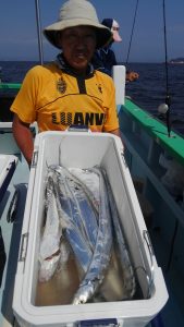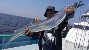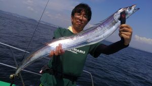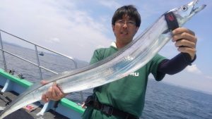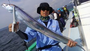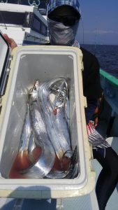 序盤はテンポ良くタチウオは釣れ上がり、順調な気配でしたが長くは続かず、フッキング直後や水面でのバラシカが目立ち、もう少し数は伸びそうでしたが、活性が今一つの様子で、ハリ掛かりは今一つだった後半でまた少し活性が上がり、派手さは無かったものの大型タチウオもまじり「ホッ」と出来ました。