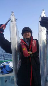 朝一は広範囲に鳥山が立って開始早々からアタリが出ました。終始、ポツポツとアタリが続き、途中、中だるみの時間が少々ありましたが終盤も入れ食いタイムがスタート!50~60センチの良型揃いで活発に釣れました。