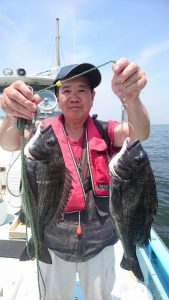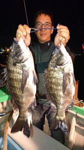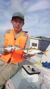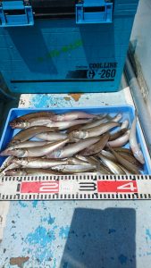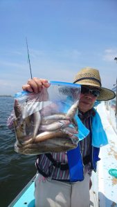 諦めかけた終盤上がり間際に潮通しのいいポイントでポツリポツリと釣れ始めて短時間でしたが入れ食いタイムもあり、少々時間を延長してオカズを確保して頂きました。