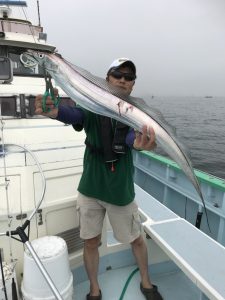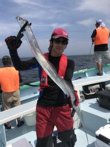 他にも122cmを頭にメーターオーバーを3本キャッチした市原市の藤田様。メーターオーバーは船中11本うち110cm越えは6本。大型タチウオ回遊中です‼️