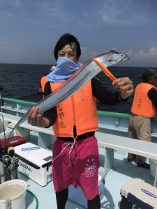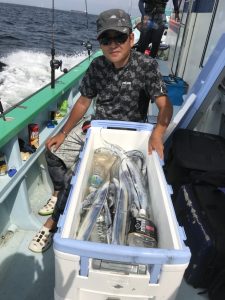 コメント:前日の釣果があてにならないことが多いタチウオですが、昨日のコメント通り今日は復調してくれました❗プチラッシュのような活発にヒットする事もあり好調でしたが、今日は前半に好調だった方は後半にはアタリが中々出ず、逆に前半は今一つだった方は後半からはアタリが多く出て、終始アタリが続いた方はいらっしゃら無かったのですが、全体的には釣果は平均的で、およそ船中の4分の3の皆さんは二桁釣果となってました。このまま安定してくれることを祈って明日も出船致しますので、お待ちしてます。