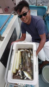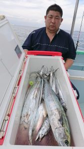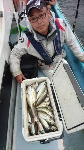 途中、サバが回遊してきてからオマツリが多くなったり、小アジが多くなったりしましたが終了まで好調に釣れて、クーラーボックスの中は賑やかになりました。
