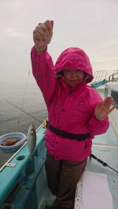 コメント : 午前中はシケ予報でお客さま揃わず出船出来ませんでしたが午後からは風が弱まる予報もあって満員御礼で出船出来ました。
