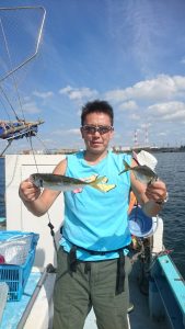 今日は、チョット盛り上がったかなぁ、くらいの時合いでシケ前の高活性に期待してたのですが残念でしたが、こちらは影響があったのか湾内では珍しい野田市の鈴木様のキャッチしたヒラメ(4kg)❗。1シーズンでソゲクラスは数匹捕れますが、さすがにこのサイズは珍しいですね。他に船中サゴシ2本もキャッチ出来ました。