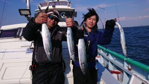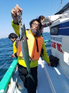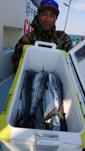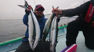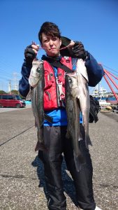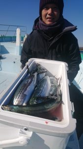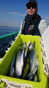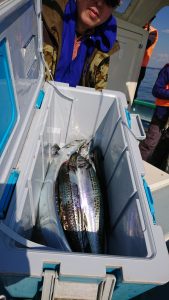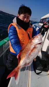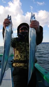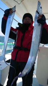 今日のタチウオはサゴシにまじつて船中2本のみで、千葉市の青木様はキレイなマダイの3.7kgをキャッチされました。