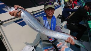 後半は大型タチウオ狙いで、深場へと移動してバラシが目立ち残念でしたが、大・中・小まじりでキャッチ出来て、