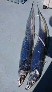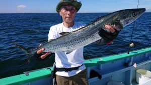 途中、雷雨の接近があり一時避難しましたがにわか雨程度で通過した後、終盤はアジと小サバの混じりでポツポツ釣れて皆さまお土産確保出来た様です。