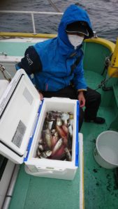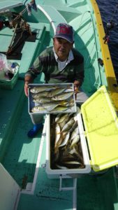 明日21日(金)はショートアジ船で確定しております。22日(土)はルアー五目船の2隻目で23日(日)は午後ルアー五目船での出船ですのでご予約お待ちしてます。